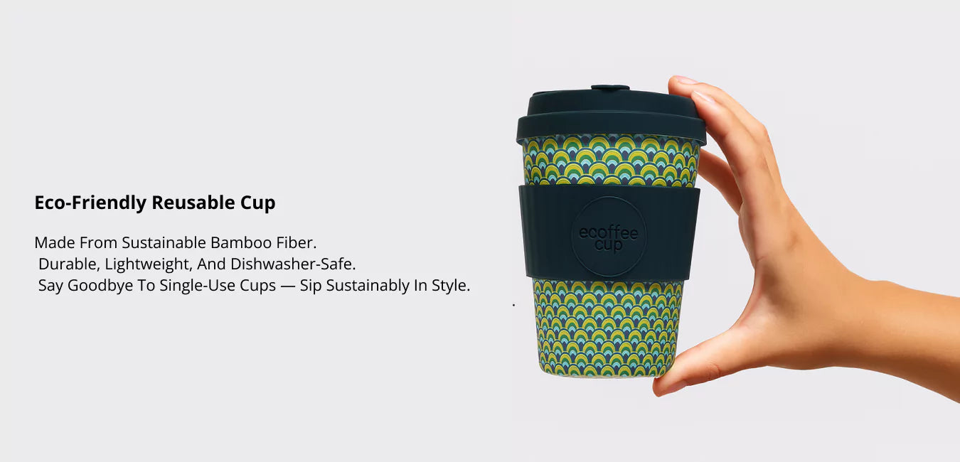 Lightweight (125g), sturdy, and made from naturally organic bamboo fibre. Features a resealable no-drip lid and high-grade, latex-free silicone lid and sleeve. BPA, BPS, and phthalate-free. Naturally sterile with no plastic aftertaste. Fully dishwasher-safe. Not microwave-safe.
