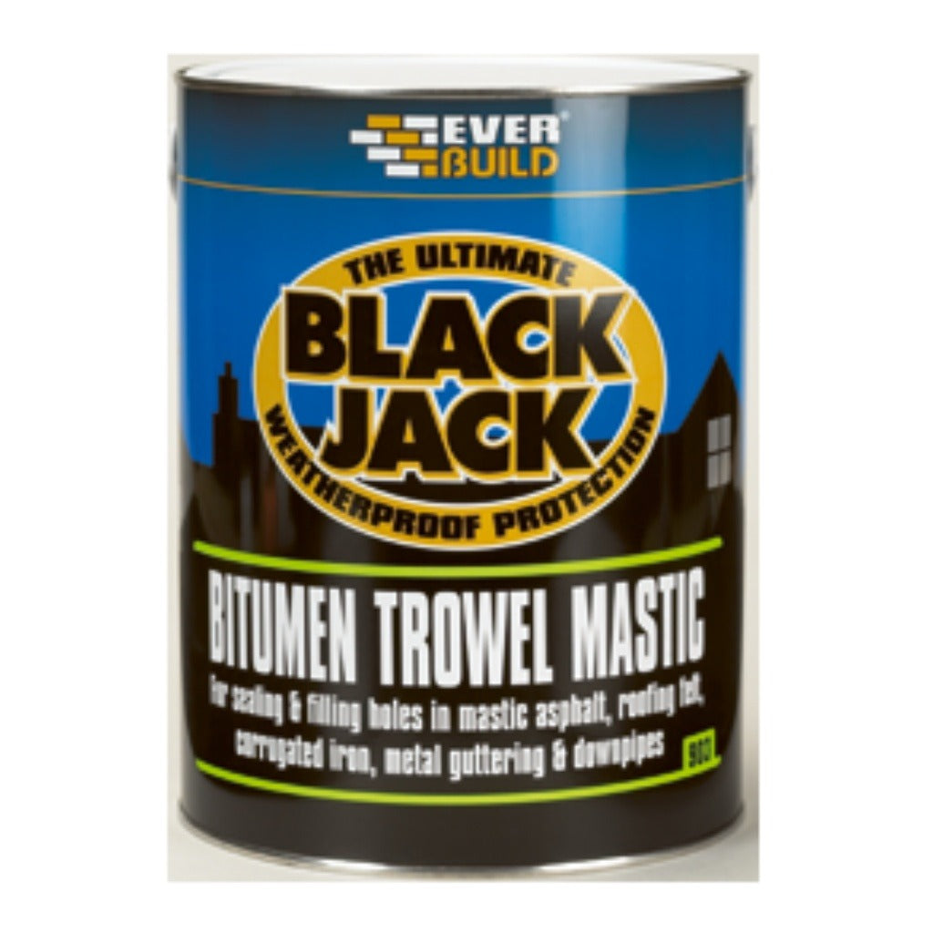 EVERBUILD BLACK JACK 903 BITUMEN TROWEL MASTIC is a trowel-applied, black, heavily-filled bituminous compound with added fibres for reinforcement. The product forms a surface skin, but the mass below remains soft to allow for moderate movement. Suitable for sealing and filling holes in mastic asphalt, roofing felt, corrugated iron, metal guttering and downpipes.