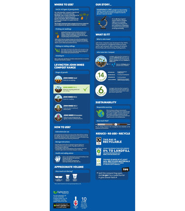 Levington John Innes No.1 compost has a specially balanced nutrient mix ideally matched to the needs of developing seedlings, young plants and newly rooted cuttings. Specially designed to ensure the ideal air and water holding capacity and nutrients content for different kinds of plants. Levington John Innes formula composts are based on a traditional mixture of loam, peat, and washed and graded horticultural grit. Use from January to December as required.