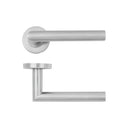 Duane Premium Handle, Lever on Round Rose In Satin Stainless Steel Handle