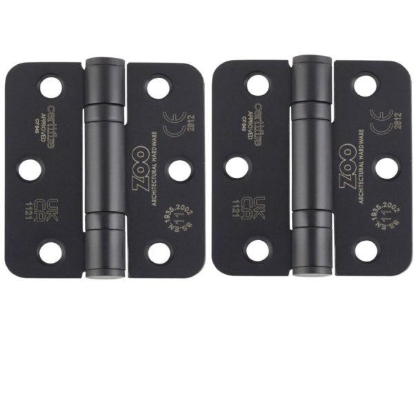 Zoo Hardware ZHSS7667R-MB Grade 11 Hinges – Ball Bearing 76mm x 67mm x 2.5mm Radius Corner – Matt Black