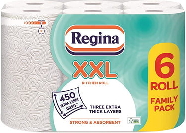 Regina XXL Kitchen Roll, 6 Rolls, 450 Extra Large Sheets