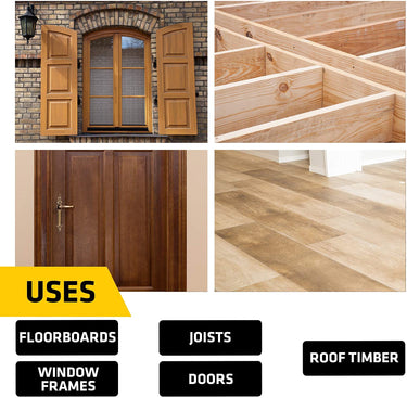 - Suitable for both internal and external use ideal for use on rough-sawn or planed timbers such as floorboards, joists, roof timbers, window frames, door frames and much more.