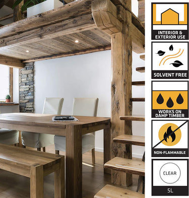 - Fast-drying, non-flammable and can be applied to all wood and joinery in damp or wet conditions without loss of performance.