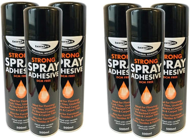 (6 Tins) 500ml Bond it spray Contact adhesive Super Strong carpet tiles underlay spray glue