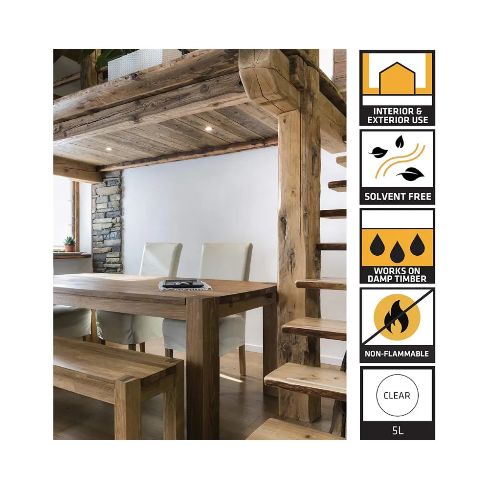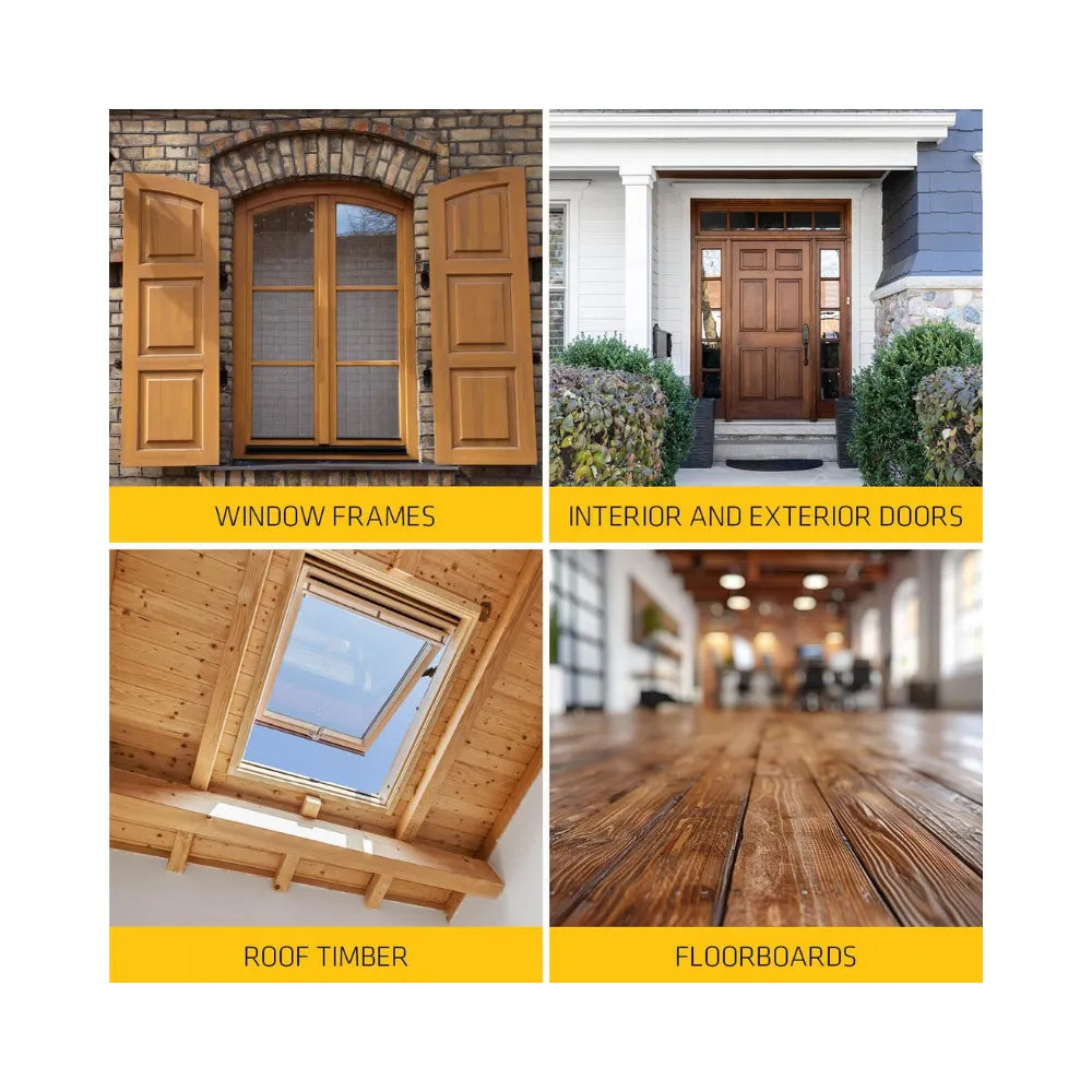 - Fast-drying, non-flammable and can be applied to all wood and joinery in damp or wet conditions without loss of performance.